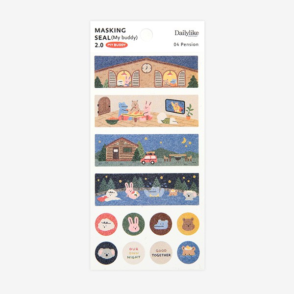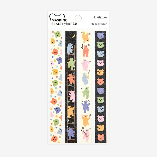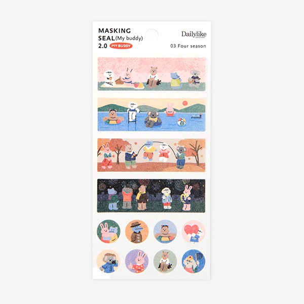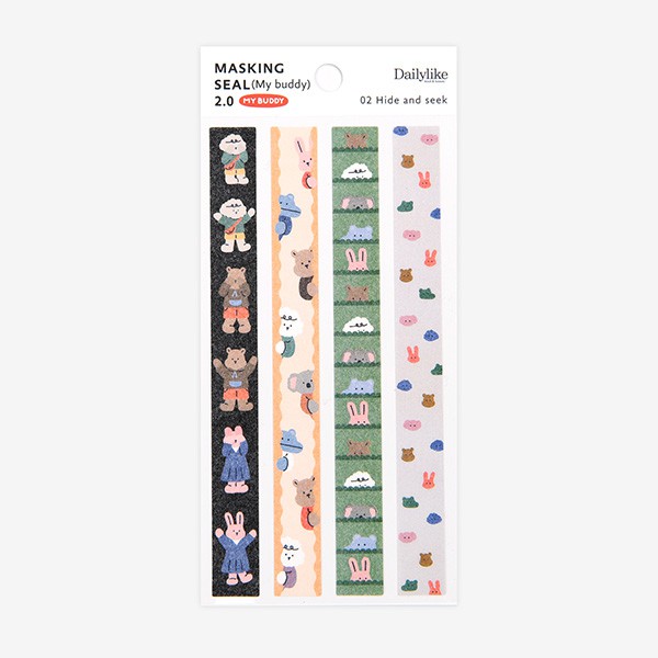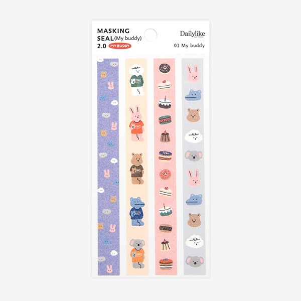 masking seal version 2.0 เทปตกแต่งแบบตัดพร้อมใช้ จาก คอลเลคชั่น My Buddy & Jelly Bear สัตว์น้อยแสนน่ารักและเจ้าหมีจิ๋ว ที่พร้อมจะช่วยตกแต่งให้ไดอารี่หรือสิ่งของอื่นๆของคุณให้ดูมีชีชิวิตชีวายิ่งขึ้น (1 set มี 4 แผ่น)