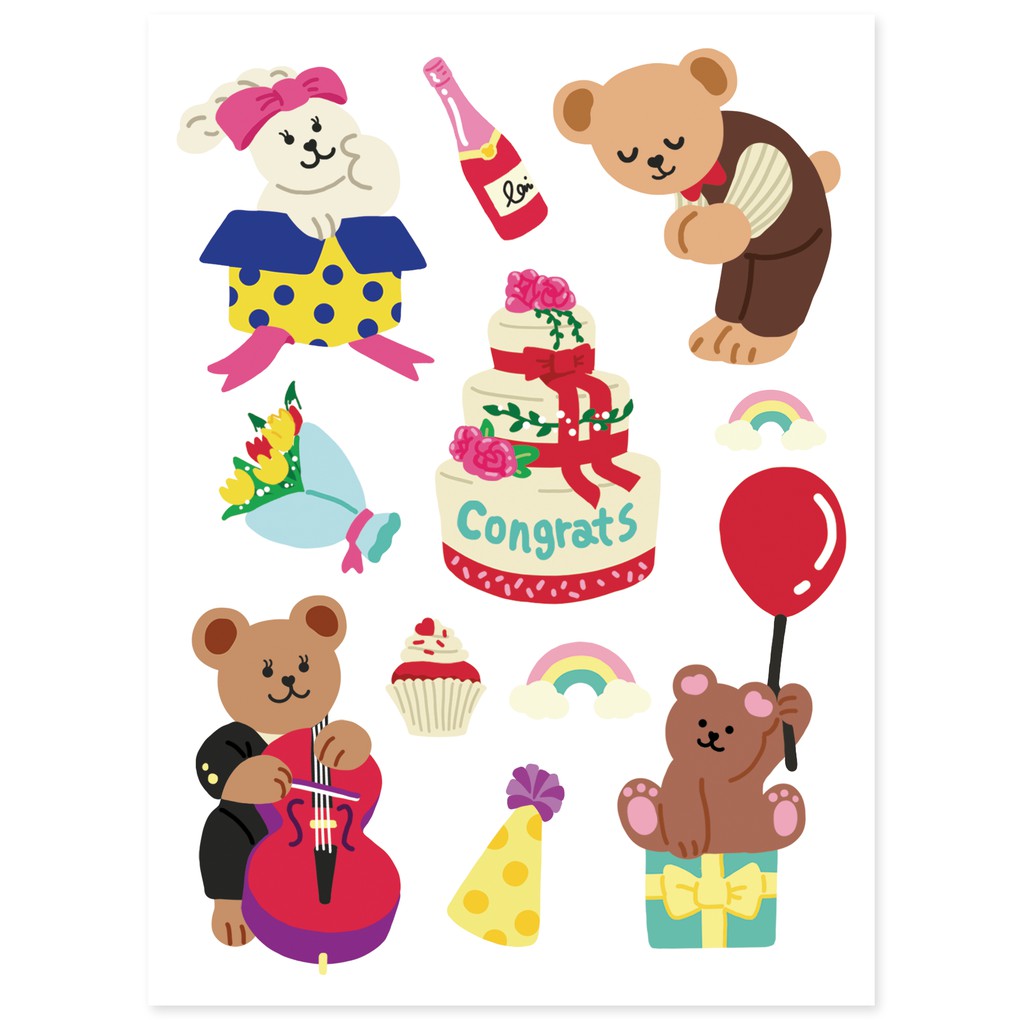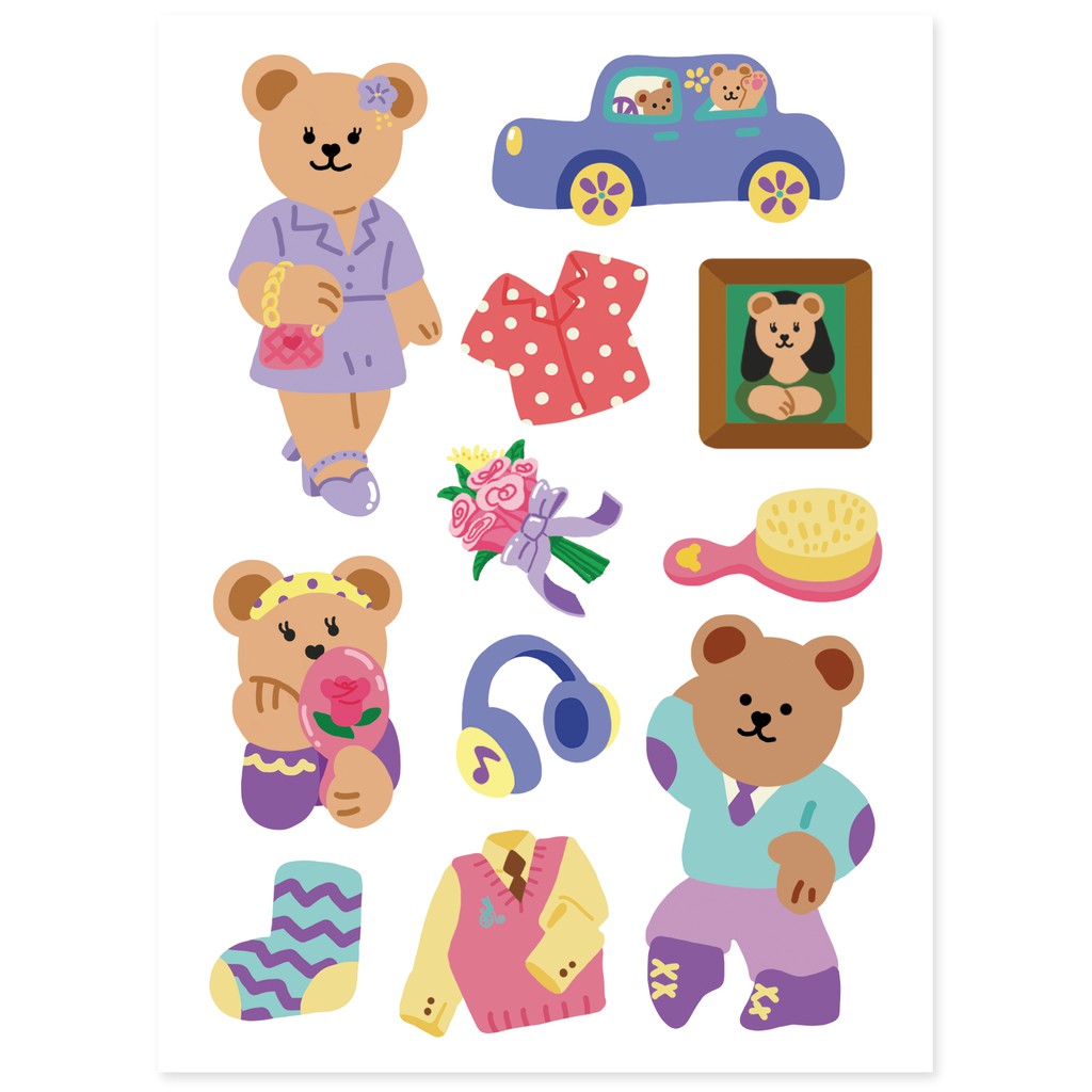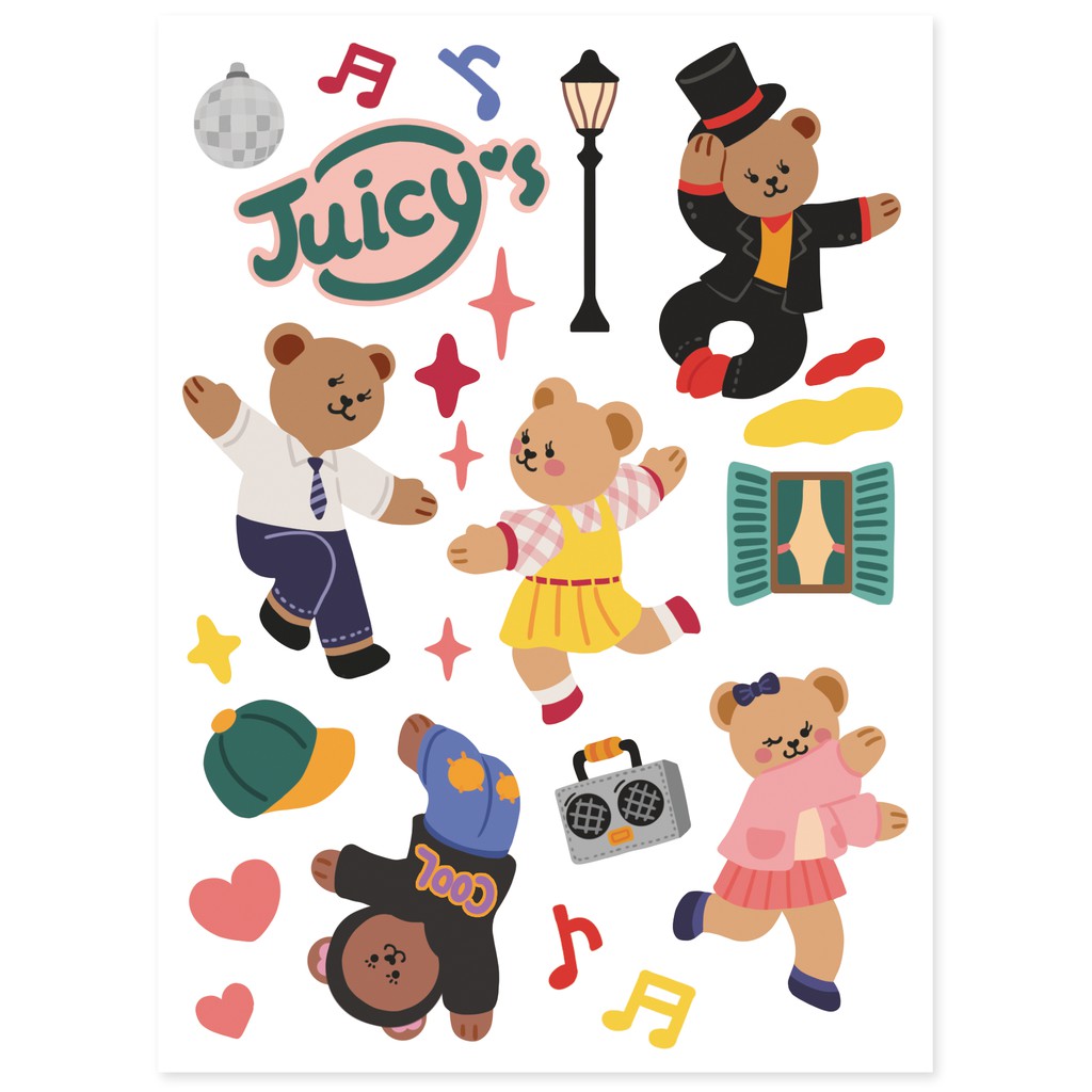 สติ๊กเกอร์สุดน่ารักจากคอลเลคชั่น Juicy Bear เวอร์ชั่น Daily life แสดงไลฟ์สไตล์ชีวิตประจำวันต่างๆของเจ้าหมีน้อย ทำจากกระดาษสังเคราะห์แทนกระดาษธรรมดาทำให้ทนทานและฉีกขาดได้ยาก ไว้ตกแต่งไดอารี่ จดหมาย อุปกรณ์อิเล็กทรอนิกส์หรือสิ่งของที่พื้นผิวเคลือบ สามารถแปะแล้วลอกออกได้ไม่ทิ้งคราบ แถมกันน้ำอีกด้วยนะ!