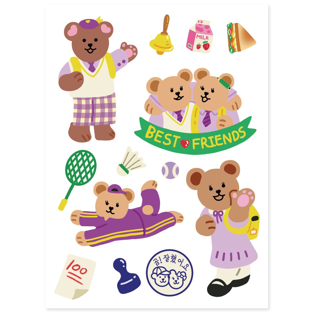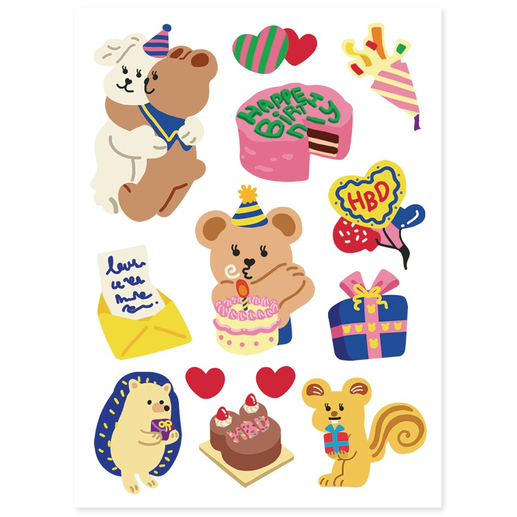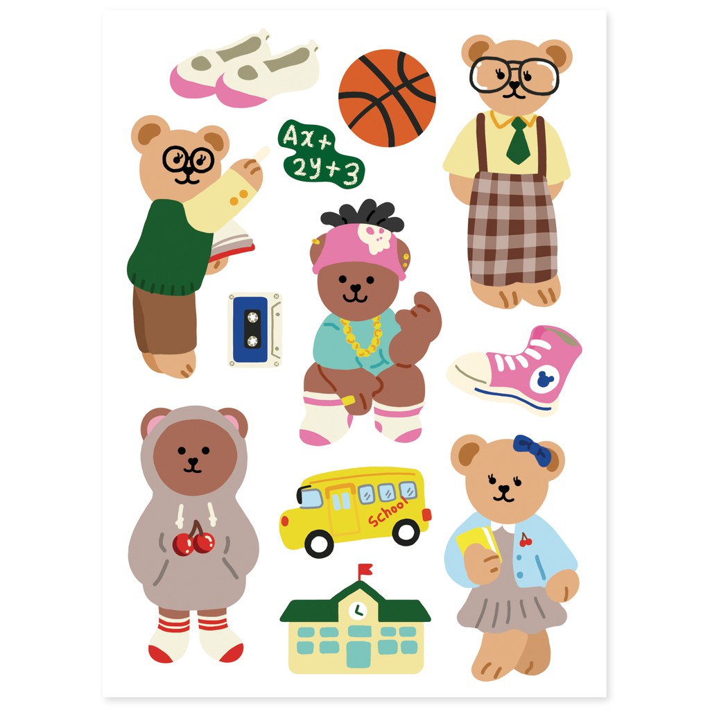 สติ๊กเกอร์สุดน่ารักจากคอลเลคชั่น Juicy Bear เวอร์ชั่น Daily life แสดงไลฟ์สไตล์ชีวิตประจำวันต่างๆของเจ้าหมีน้อย ทำจากกระดาษสังเคราะห์แทนกระดาษธรรมดาทำให้ทนทานและฉีกขาดได้ยาก ไว้ตกแต่งไดอารี่ จดหมาย อุปกรณ์อิเล็กทรอนิกส์หรือสิ่งของที่พื้นผิวเคลือบ สามารถแปะแล้วลอกออกได้ไม่ทิ้งคราบ แถมกันน้ำอีกด้วยนะ!