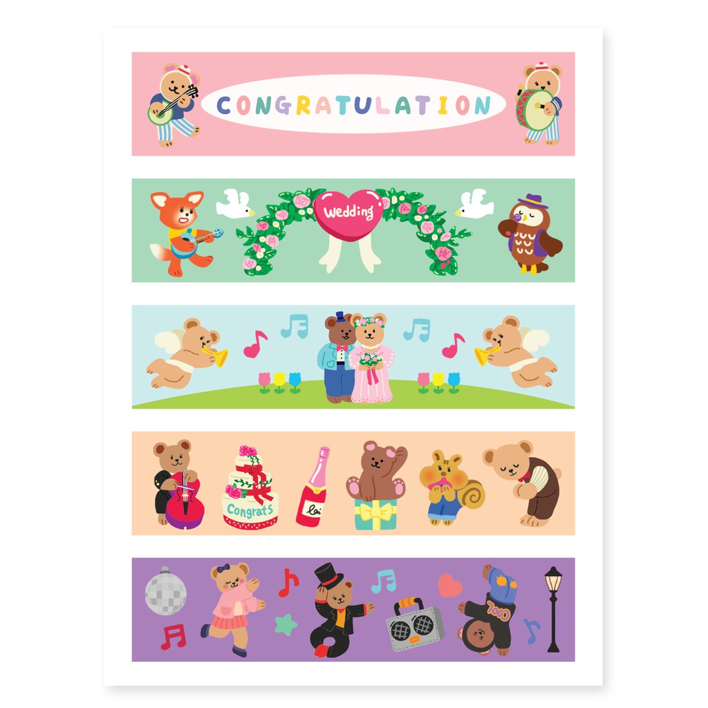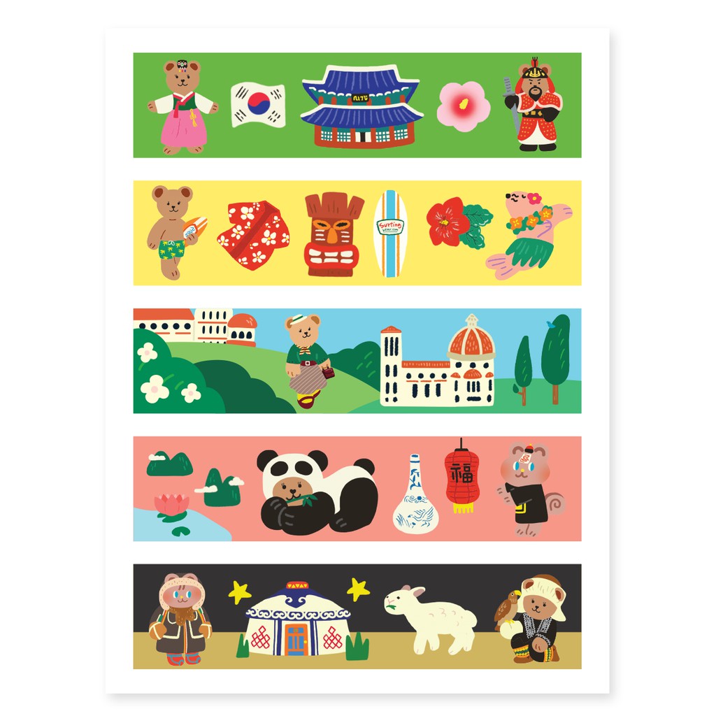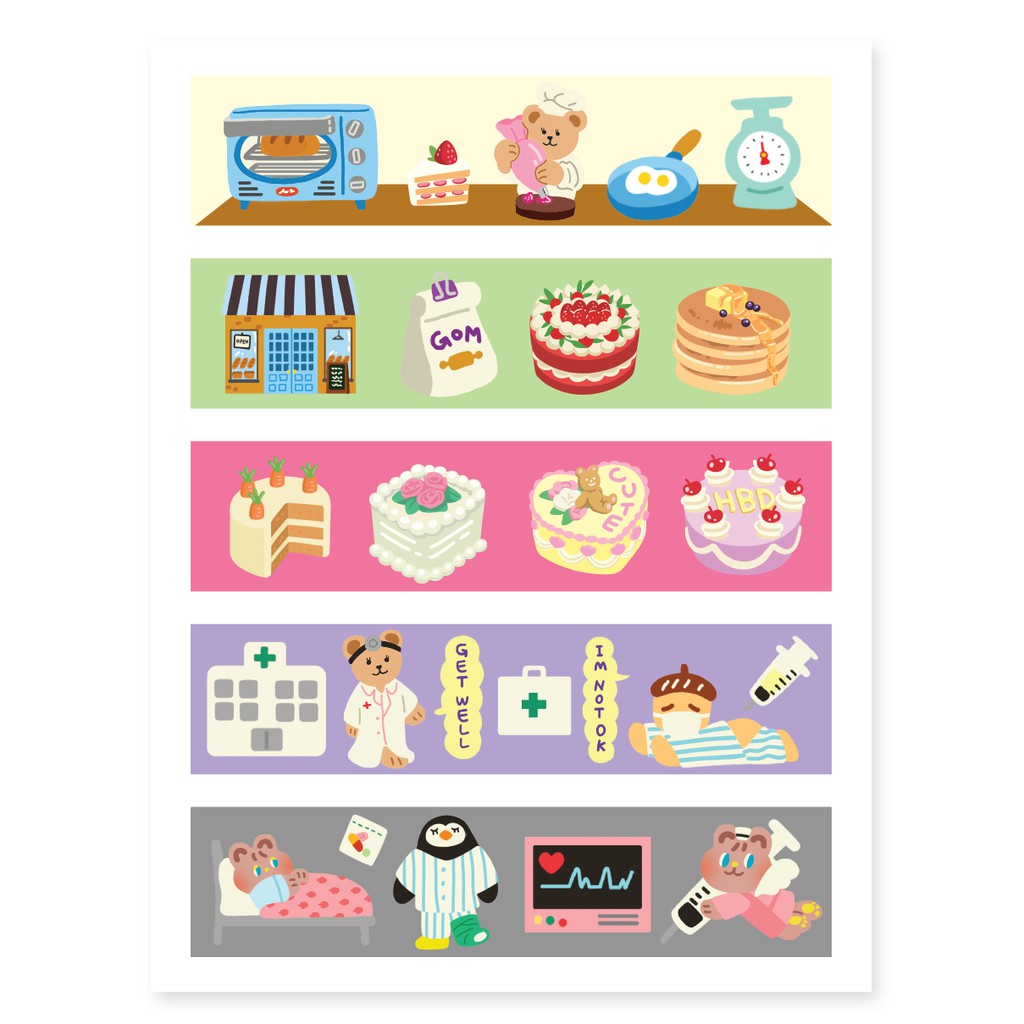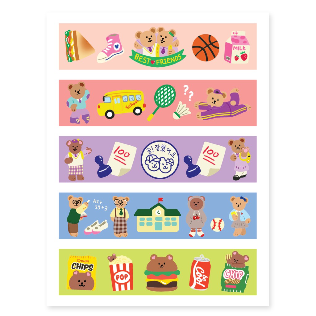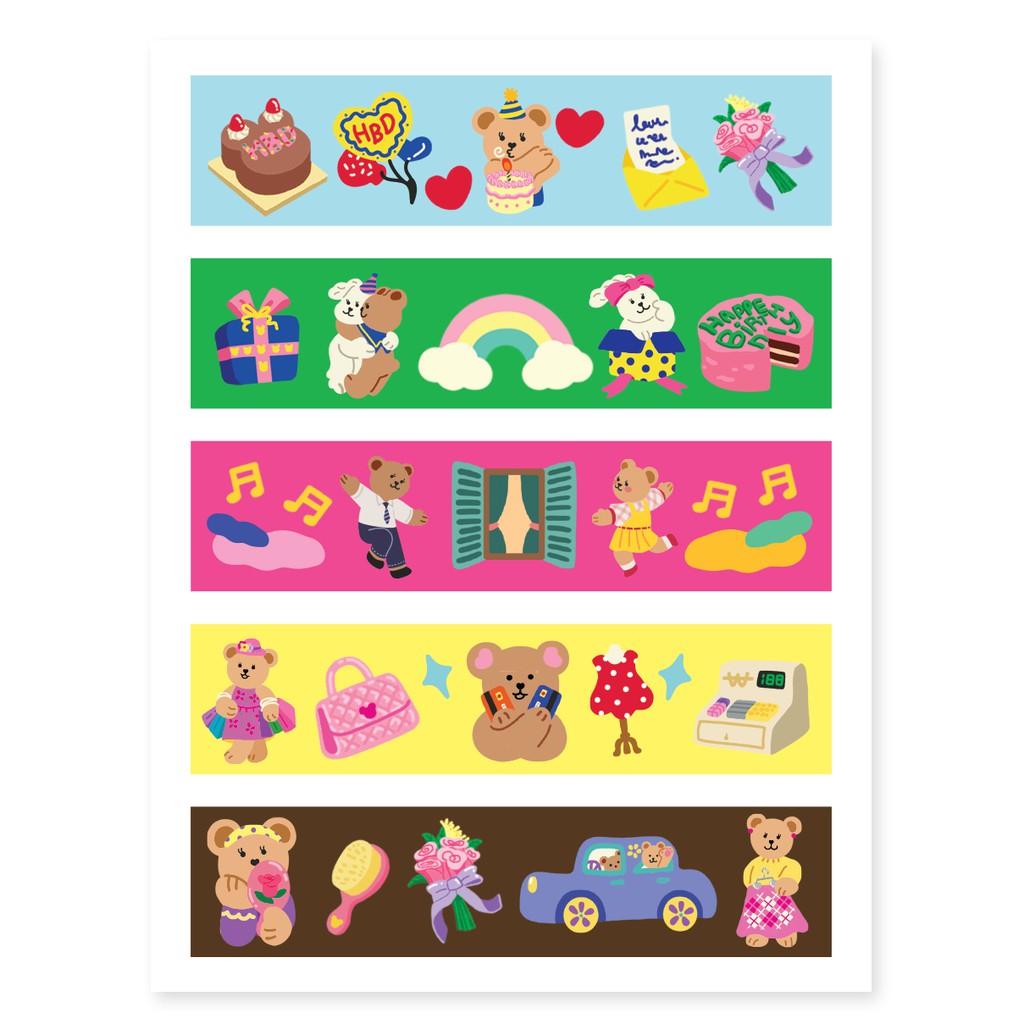 Masking Seal เทปตกแต่งแบบตัดพร้อมใช้จากคอลเลคชั่น Jucy Bear หมีน้อยน่ารัก ไว้ตกแต่งไดอารี่ จดหมาย ตารางงานหรือปฏิทิน เพื่อเพิ่มความน่ารักน่าอ่าน (1 set มี 4 แผ่น)