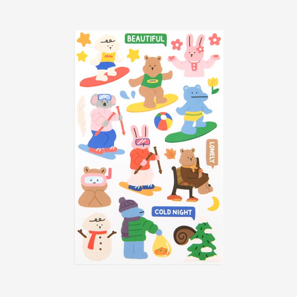 สติ๊กเกอร์สุดน่ารักจากคอลเลคชั่น Juicy Bear เวอร์ชั่น Country หมีน้อยแสนน่ารักท่องเที่ยวไปในประเทศต่างๆ ทำจากกระดาษสังเคราะห์แทนกระดาษธรรมดาทำให้ทนทานและฉีกขาดได้ยาก ไว้ตกแต่งไดอารี่ จดหมาย อุปกรณ์อิเล็กทรอนิกส์หรือสิ่งของที่พื้นผิวเคลือบ สามารถแปะแล้วลอกออกได้ไม่ทิ้งคราบ แถมกันน้ำอีกด้วยนะ!
